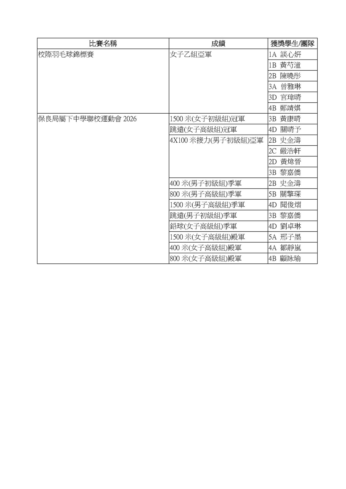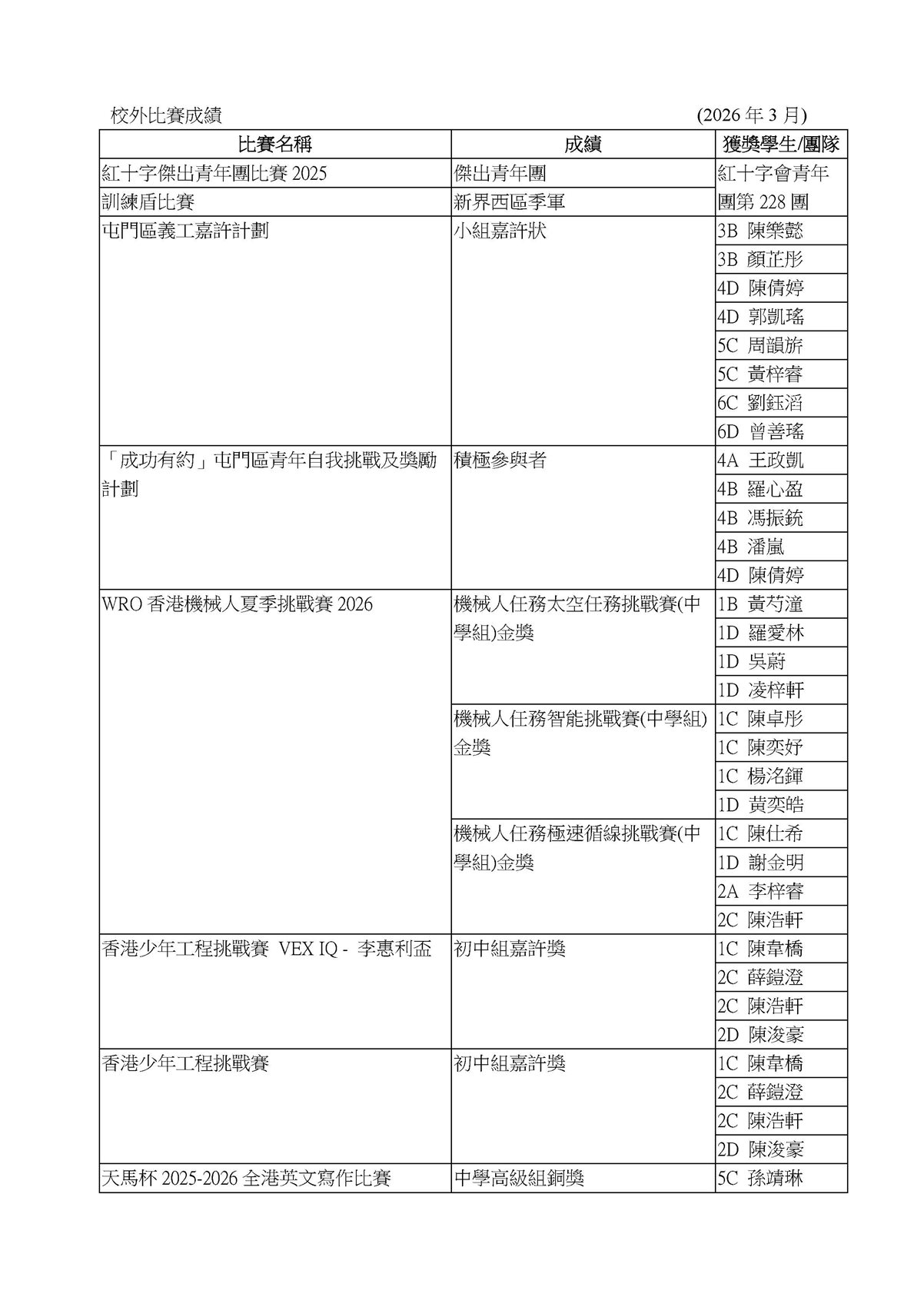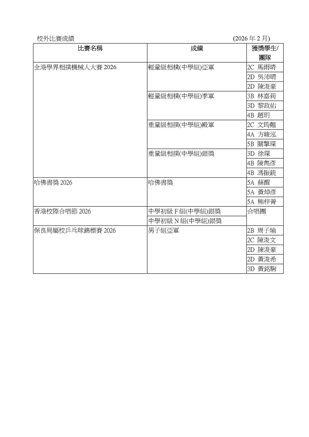 校外比賽成績龍虎榜