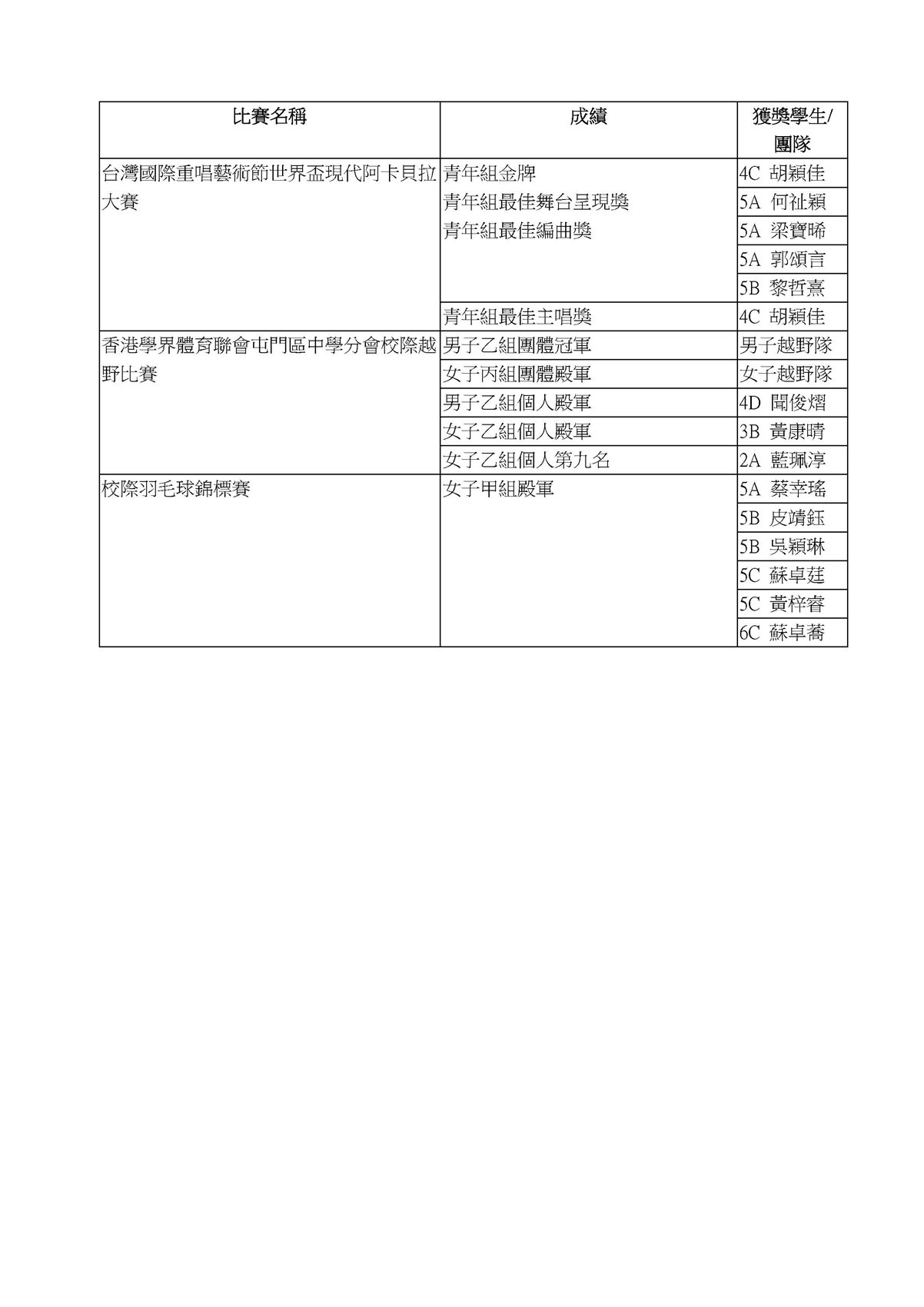 課外活動成就